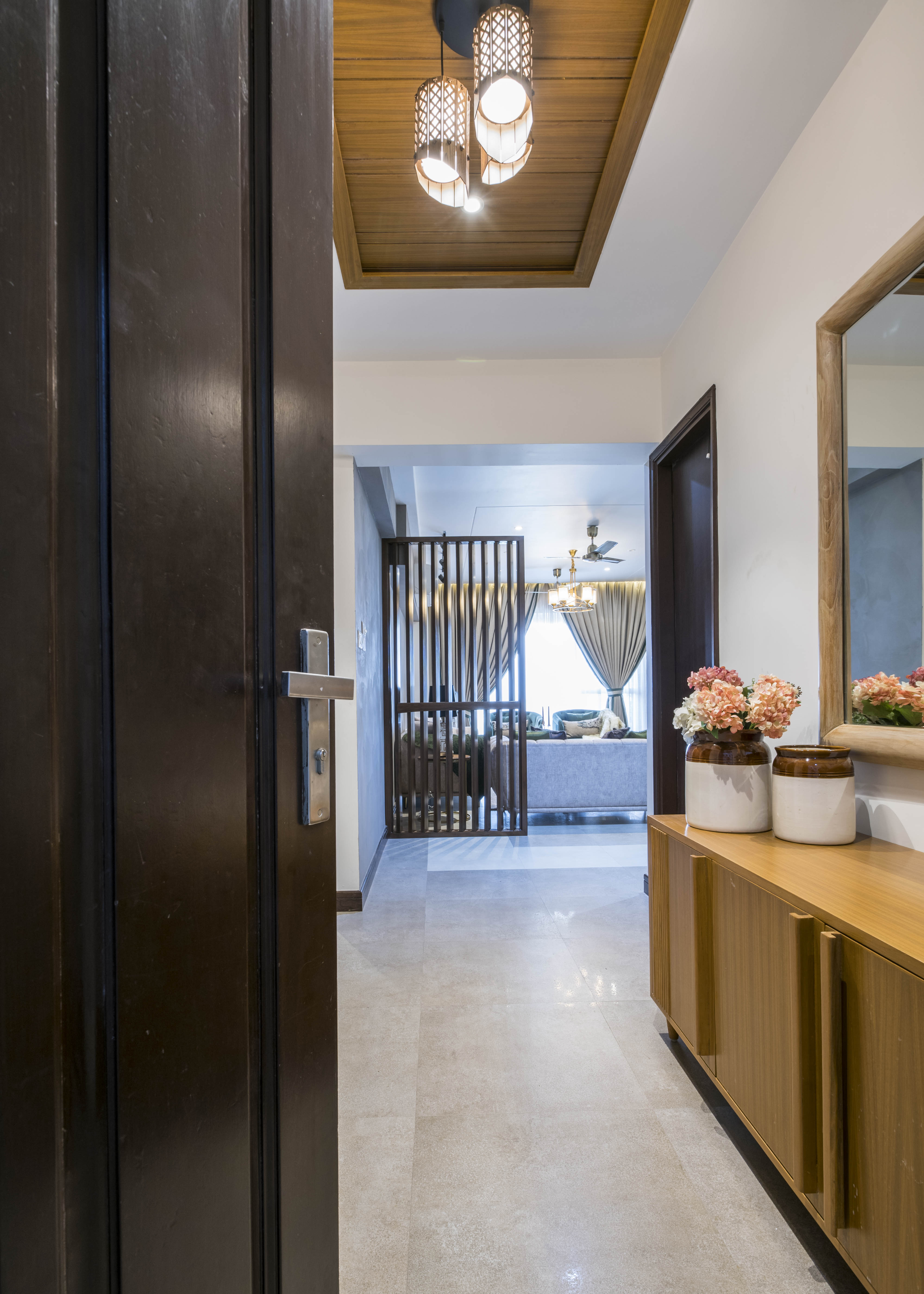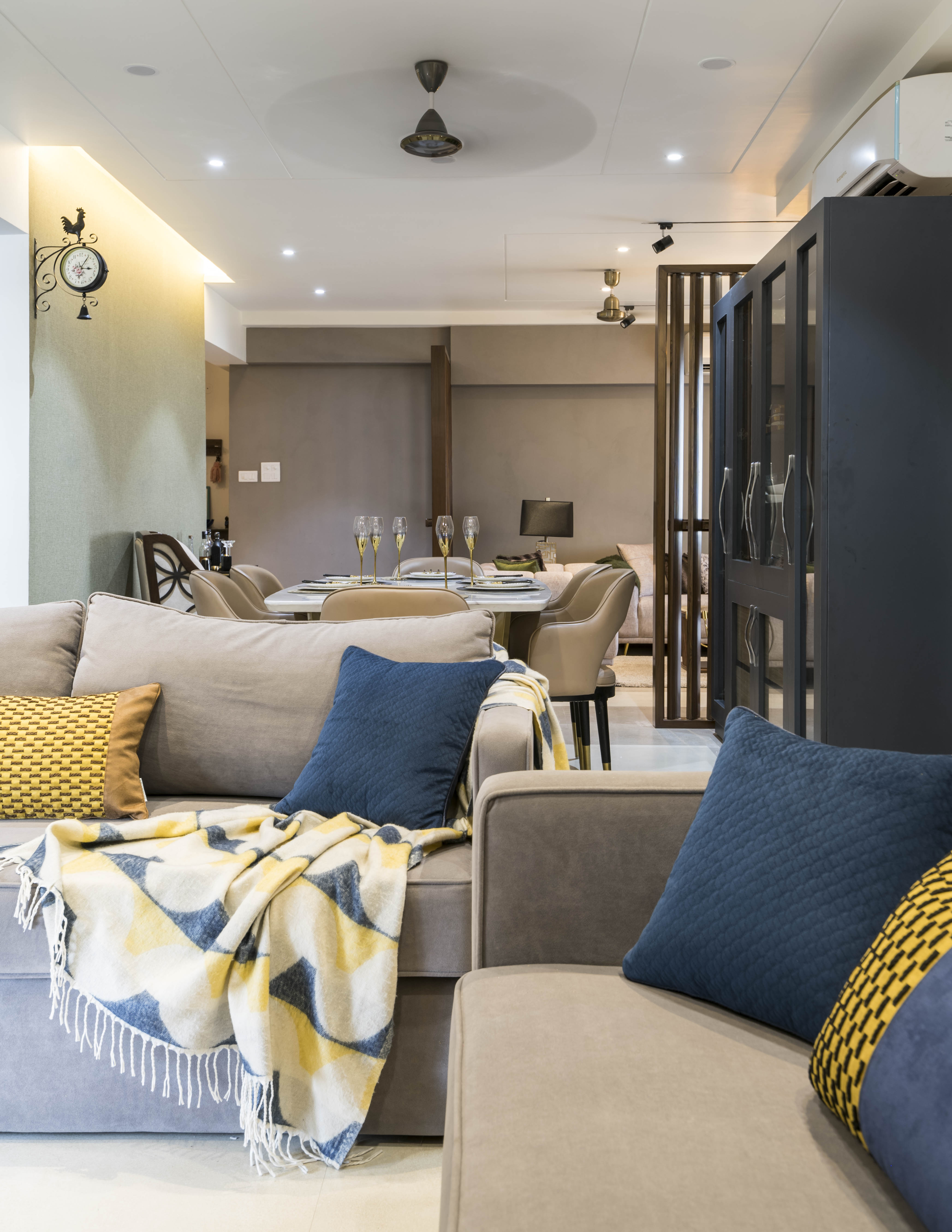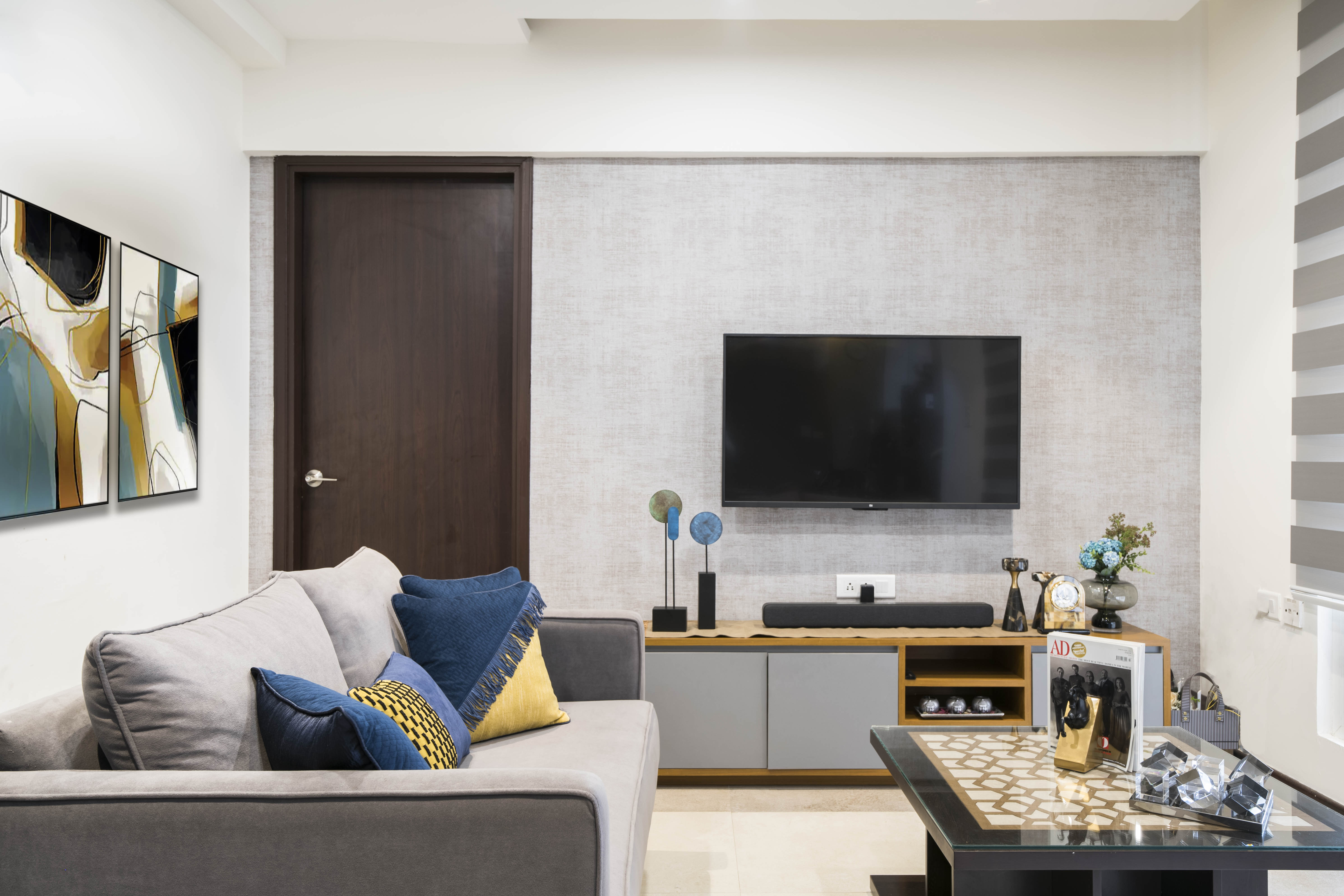 Most urban residents are always at the mercy of limited space, so it becomes imperative to maximize every available inch and use it optimally. The clients are a young couple who wanted to live in a comfortable space; a home that is luxurious, minimalistic and cozy at the same time. Our design is reflective of that vision putting function first. Warm woods and subtle greys merge to form a fluid concept where no one element dominates; with splash of vibrant colours in accessories and furnishings. The result is an open, bright and inviting environment. Each room is a reflection of the user’s personality with unique colour theme achieved through texture paints, furniture details and carefully curated soft furnishings. Keeping in mind less is more, our approach is practical as we put emphasis on the details to design this relaxed residence with a clear, modern expression.