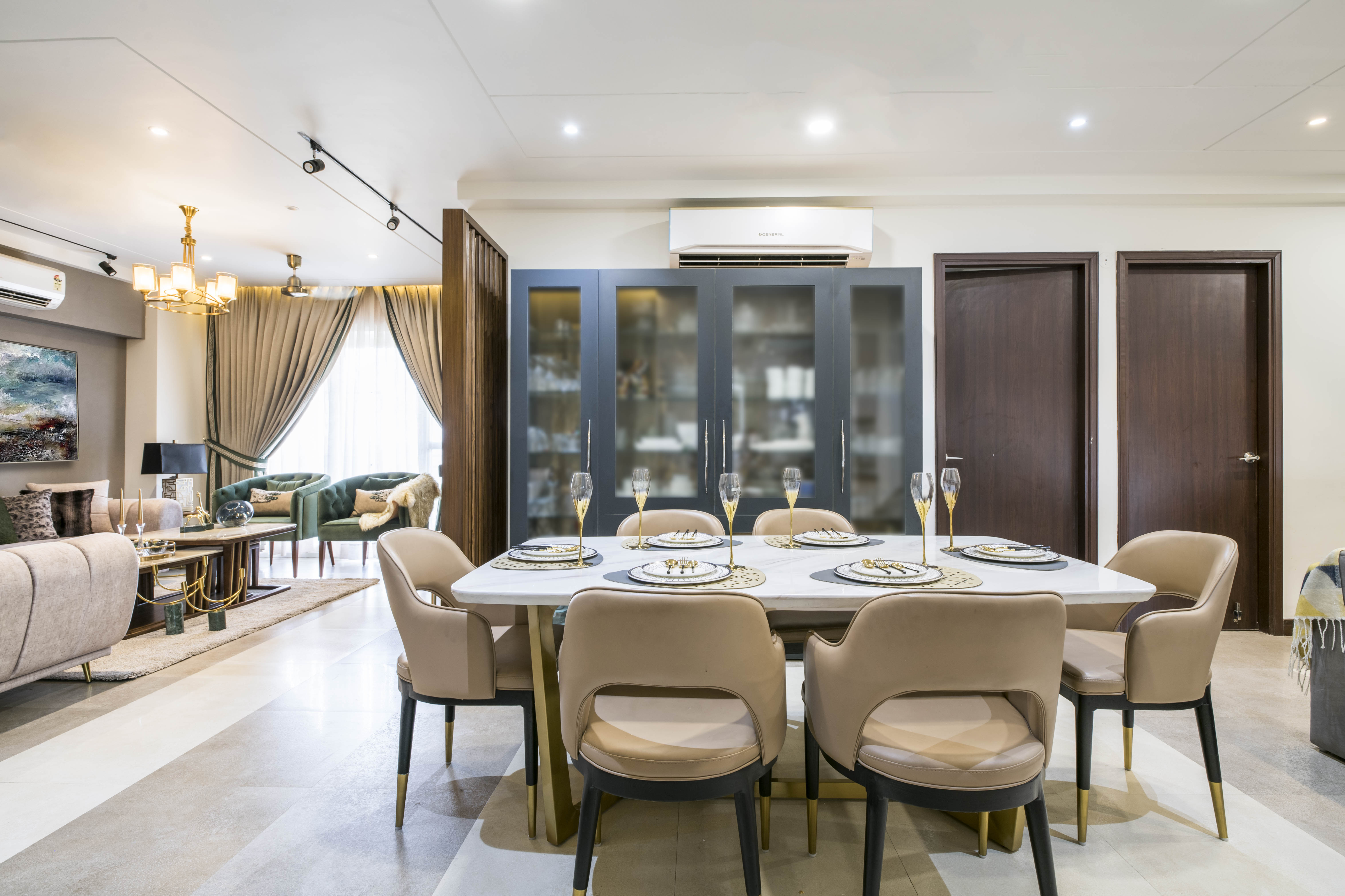 A stylish modern apartment interior with a contemporary setting, and warm ambience in a beautiful yet minimalistic set-up.
