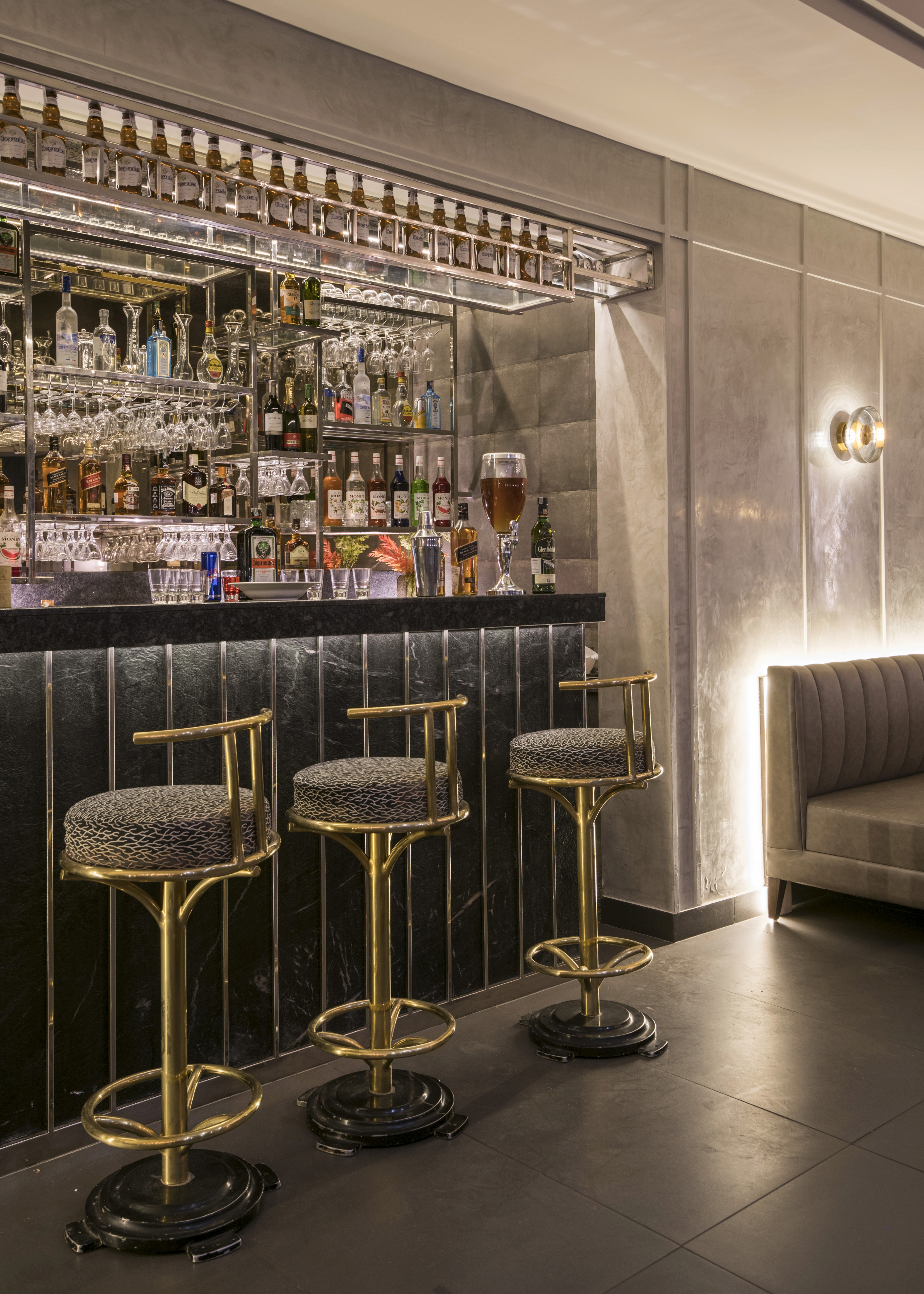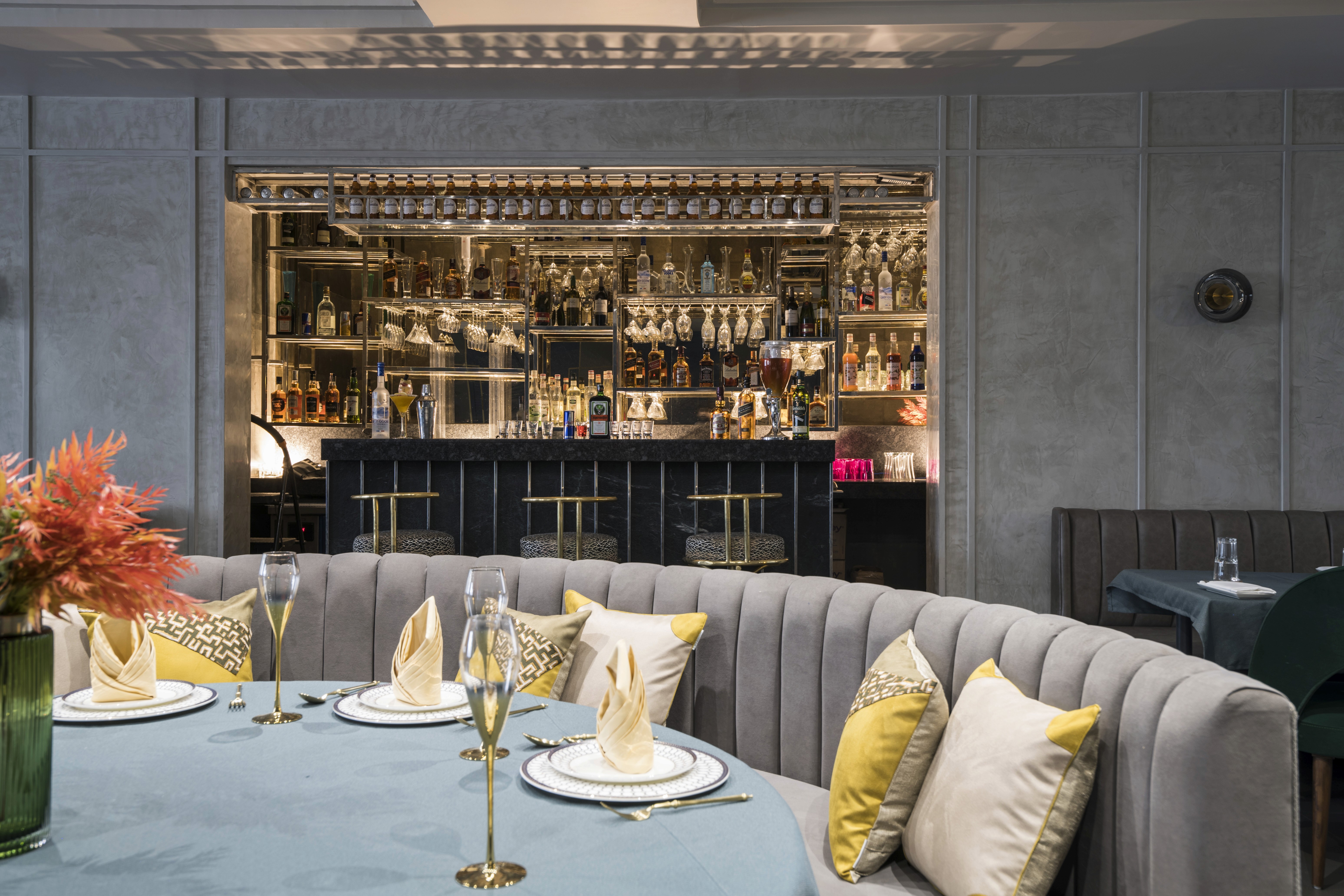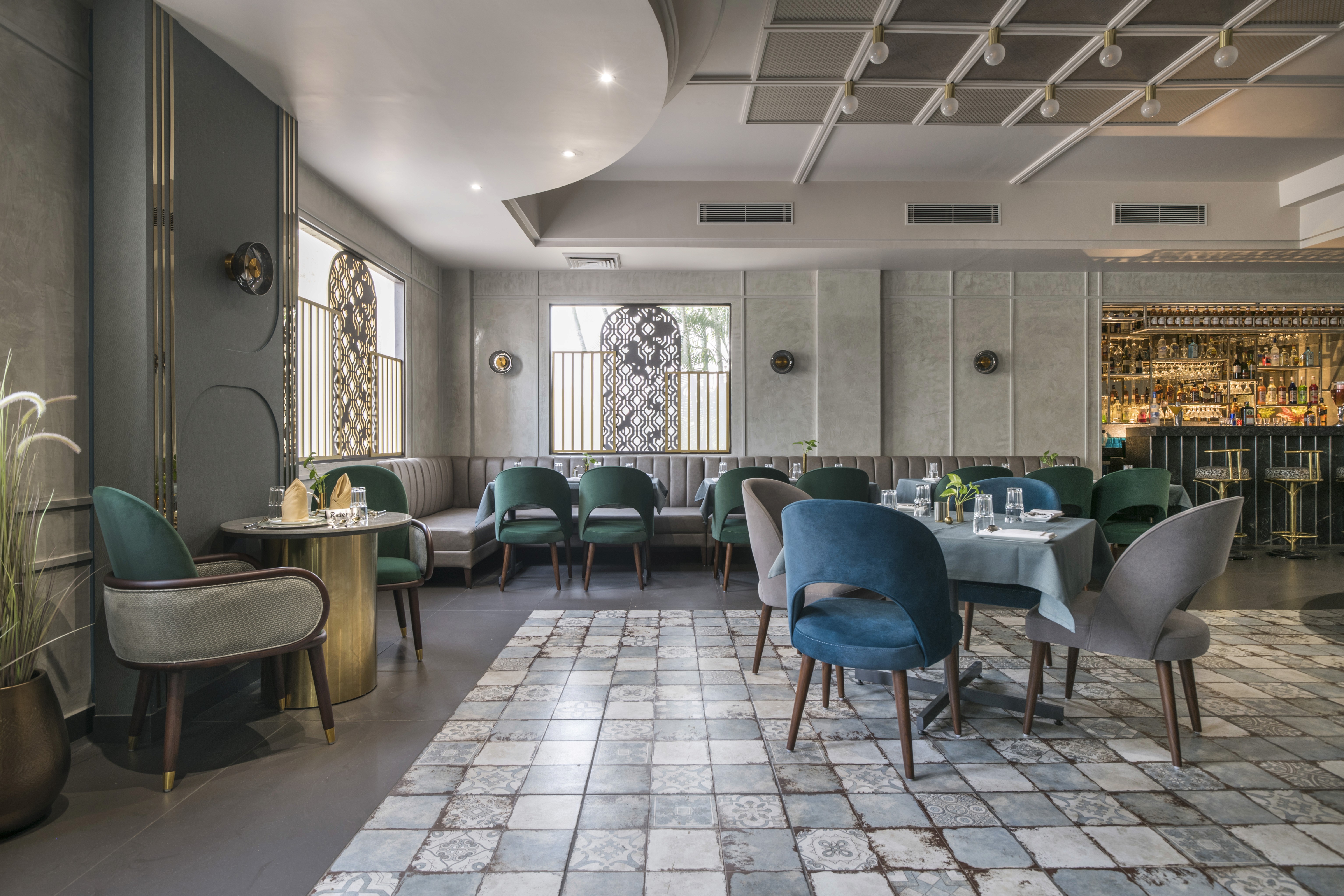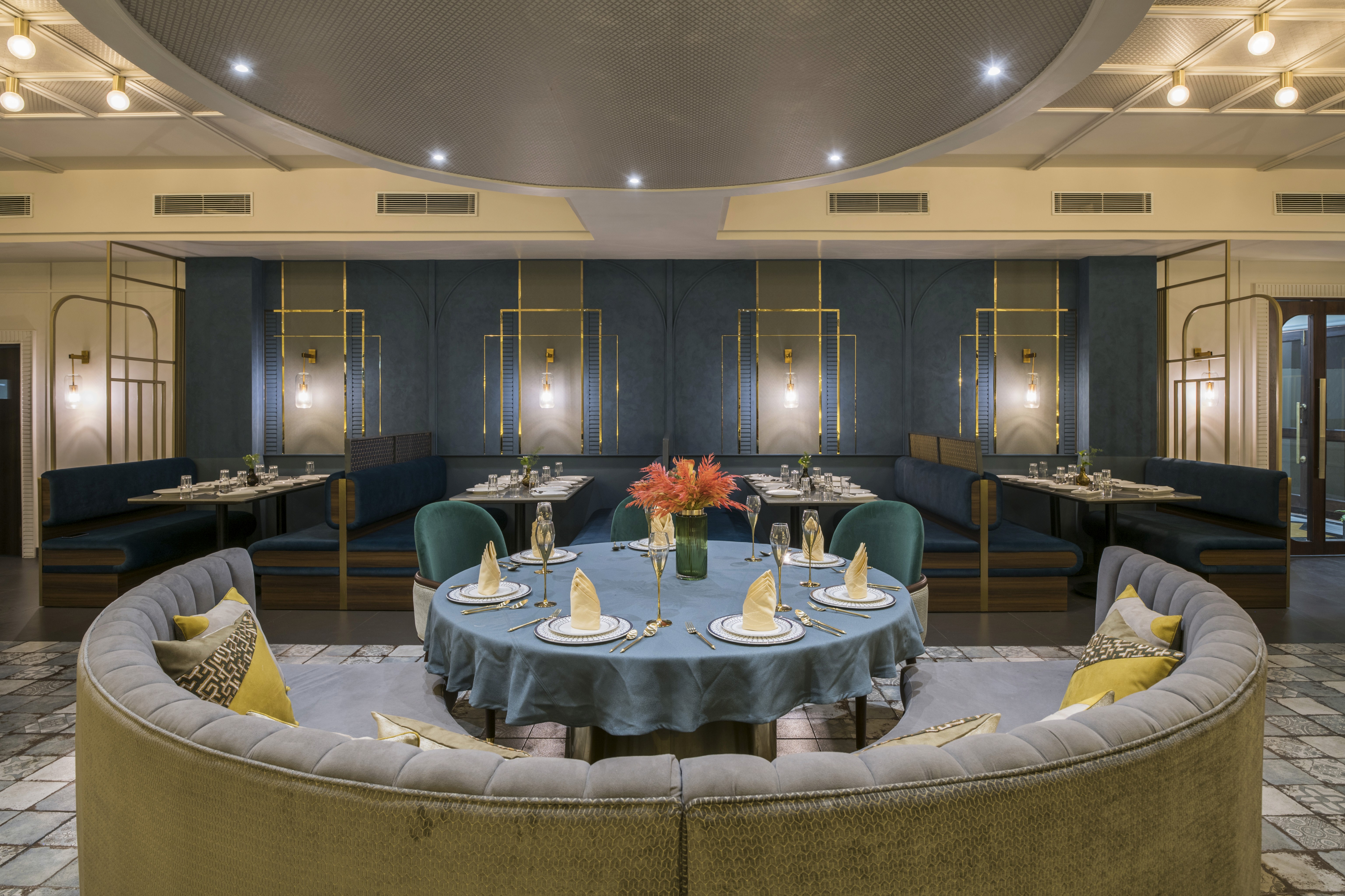 The Blue Channel is a fine dining restaurant that has been entertaining the great and the good, for more than 25 years. We redesigned the interiors keeping in mind the central theme of art deco and brand identity while providing it a fresh rejuvenating look. The restaurant offers a assorted sitting layout while the strong symmetry in the space leads to a comforting dining experience. The bar forms the focal point with accentuated lighting, marble finished counter, metal details and unique mid-century bar stools. The restaurant is a blend of contemporary and art deco elements and replete with textural play. Influenced by the hotel’s existing theme and the name Blue Channel, cosy booth sitting is created with splashes of blues in fabrics and wall panelling – complemented by arches, honed by marble table tops, gold accents and metal jaali’s. This together creates an overall experience that takes you back in the 1920’s era and serves you the class and richness.